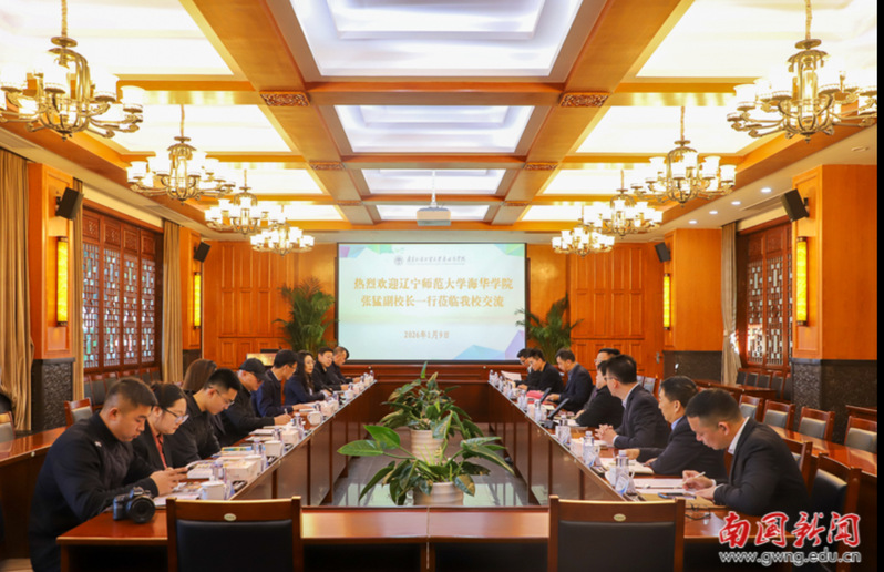 On the morning of January 9, a delegation led by Zhang Meng, Deputy Party Secretary and Vice President of Haihua College, Liaoning Normal University, visited SCBC. The two sides held an exchange meeting on topics including student affairs, admissions and employment, discipline development, and inter-university cooperation. Zhao Fuchun, Deputy Party Secretary and Vice President of SCBC, and Lai Zhili, Board Director and Vice President of SCBC, received the guests. Heads of relevant departments such as the Student Affairs Office, Admissions and Career Guidance Office, and Academic Affairs Office, as well as representatives from secondary schools including the School of Management, School of Culture and Communication, School of Computer Science, and School of Art, jointly attended the meeting.