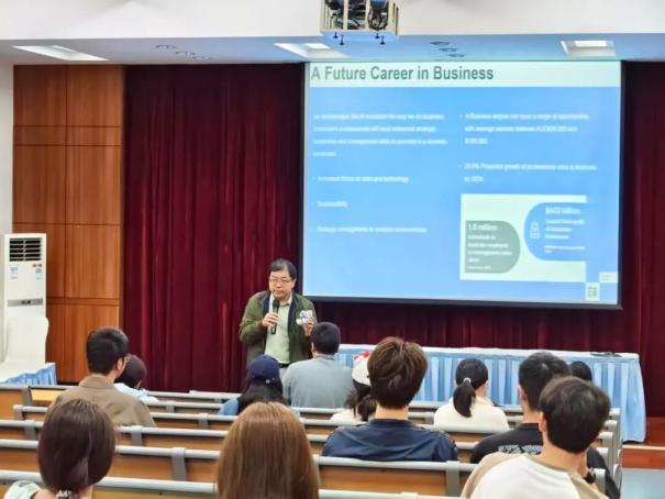 为帮助意向前往UTS交流学习的学生更全面地了解这所大学,国际学院专门邀请了UTS商科院的老师来到南国商学院进行宣讲。