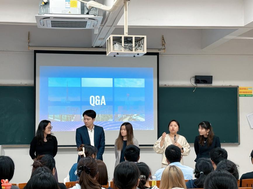 问答交流环节中,同学们围绕岗位培训机制、实习安排、专业适配性等核心问题踊跃提问。嘉宾们结合企业实际与自身经验逐一细致解答,其中刘裕成先生重点回应香港审计项目培训相关疑问。他指出,该项目主要为香港公司提供简易审计服务,已建立完善的入职培训体系——通过两周专项实操培训、专业同事一对一讲评修改练习成果,以及针对能力短板的额外补充培训,确保每位员工达到岗位标准,彻底打消了零基础同学的顾虑。互动结束后,同学们获赠定制小礼物,此次交流有效缓解了求职焦虑,增强了职业发展信心。