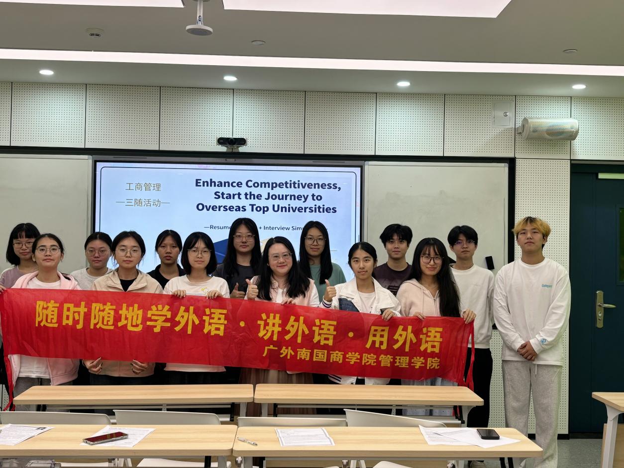 为持续贯彻“随时随地学外语、讲外语、用外语”的三随活动理念,工商管理系于12月11日下午在H603教室成功开展了留学升学技巧分享系列第二场活动——英语简历修改与模拟面试。本次活动旨在通过真实场景的互动训练,引导学生主动运用英语,在实战中优化申请材料、提升沟通能力,吸引了多名计划留学的同学积极参与。