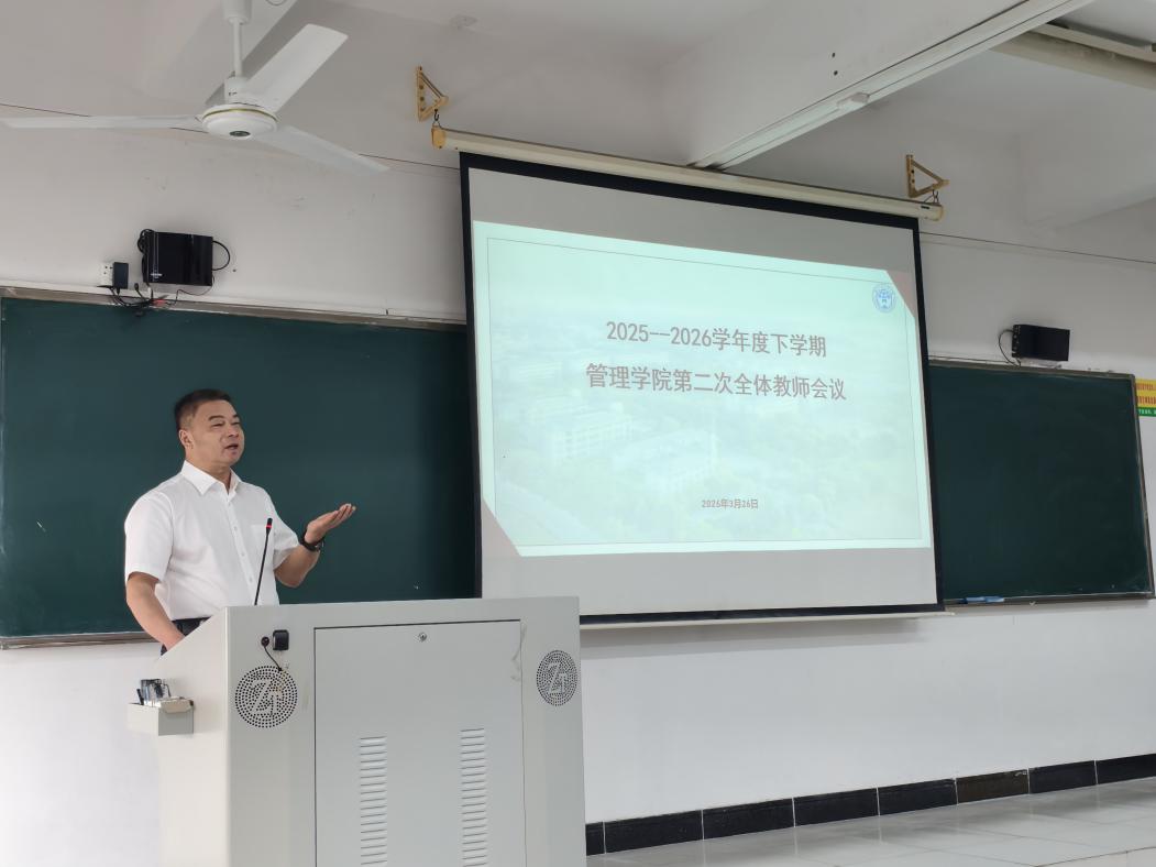 此次会议为学院新学期各项工作划定重点、明确路径,凝聚了全院教职工共识。下一步,管理学院全体教职工将以实干笃行的作风,扎实推进各项工作落地见效,持续提升人才培养质量与学科建设水平,为学校高质量发展贡献坚实力量。