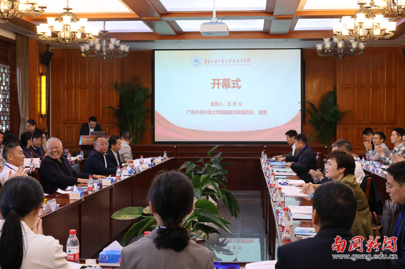 本网讯 11月15日,由广东外语外贸大学南国商学院主办,经济学院承办,中国农村财经研究会、经济科学出版社联合协办的第三届“南国经济论坛”,在广外南国商学院国际会议厅召开。论坛以“做强国内大循环 构建广东新发展格局”为主题,吸引了90多位高校教授、科研院所专家、企业高管、行业协会代表及研究生等各界人士齐聚,助力广东内循环提质。广外南国商学院副校长王关义主持开幕式。