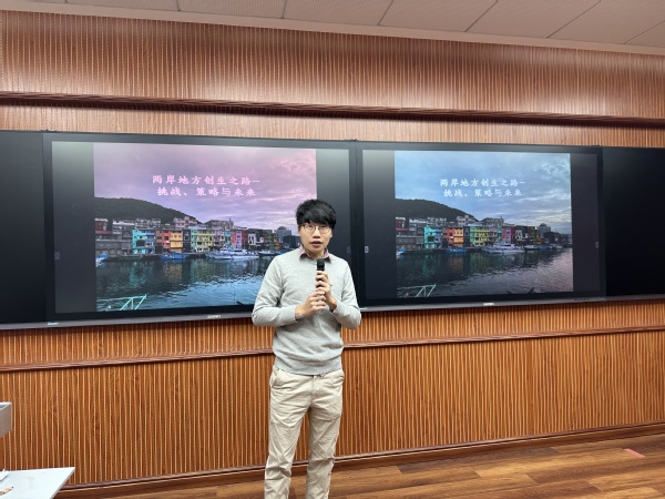 本网讯 2025年12月18日下午,经济学院在G301会议室成功举办了一场以“海峡两岸地方创生之路——挑战、策略与展望”为主题的博士沙龙活动,活动由学科建设办公室(博士工作站)、科研处、教师发展中心和经济学院主办,活动由经济学院副院长王继洲主持,经济学院简孝祐博士作为主讲嘉宾。