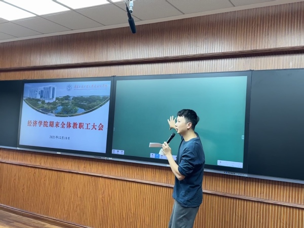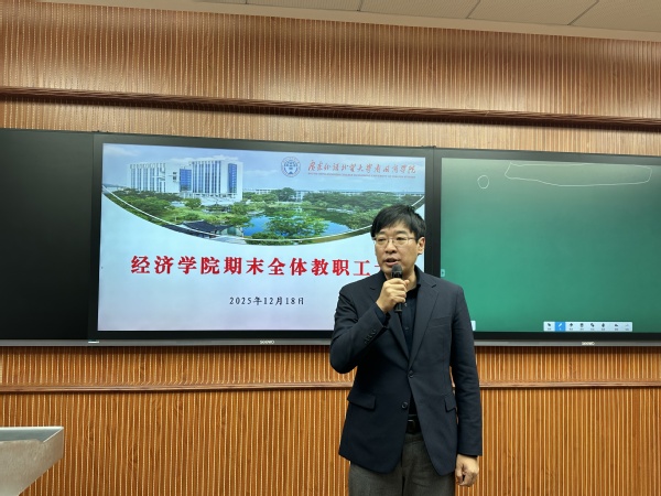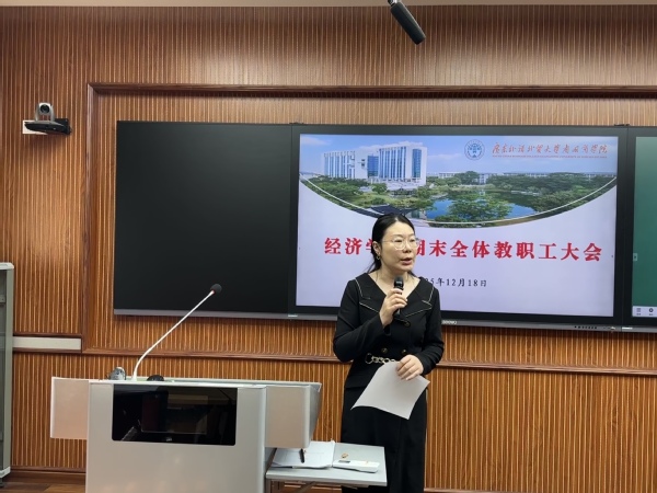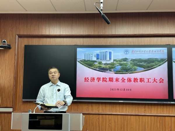 本网讯 2025年12月18日下午,经济学院在G301教室召开2025—2026学年第一学期期末全院教职工大会暨综合考核大会,会议由院长苏武俊主持。