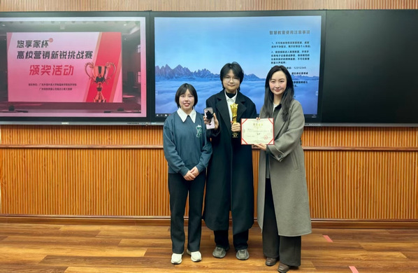 本网讯 近日,由广州地铁资源公司酒店公寓文旅群主办,经济学院协办、外贸商务学会组织的“悠享家杯”高校营销新锐挑战赛顺利结束。颁奖仪式由广州地铁资源公司代表金晓凤主持,广州地铁资源公司酒店公寓项目负责人王邵蕾、经济学院国际贸易系副主任尹秀珍等出席并为获奖团队颁奖。