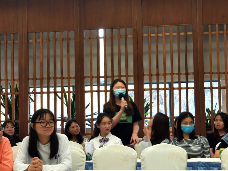 在答疑环节,同学们争先恐后地向周宇园长提出自己心中的疑问,而园长则耐心解答了同学们对于把幼儿教育纳入义务教育、男幼师的前景以及幼儿教师社会地位不高等问题的疑惑。
