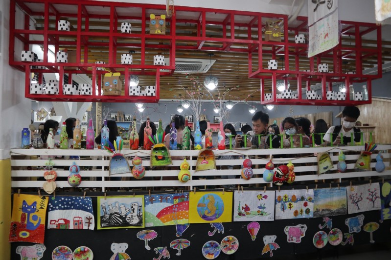 在幼儿园老师们的引领和带组老师的陪同下,同学们分组对幼儿园进行参观,本次实训实践“幼儿园一日活动观察”活动也拉开了帷幕。紧接着,同学们对室内外环境进行细致观察:大门广场挂着的各国国旗展现幼儿园中西合璧的办学色彩;画廊里富含的京剧脸谱剪纸等元素展现幼儿园对中国传统文化的重视;北京之家、巴黎之家等班级名称的命名体现着幼儿园多国文化气息的教育氛围;木工坊陶艺室培养儿童动手能力及创造思维;阅览室、游戏室、音乐室、交通规则体验区等课室设置体现出幼儿园对儿童全方面发展的培养。丰富的教育资源、鲜明的国际化特色,让同学们学习并认识到幼儿教育的独特方法,同时也感受到广外佛山君御幼儿园给予孩子轻松快乐的成长氛围。