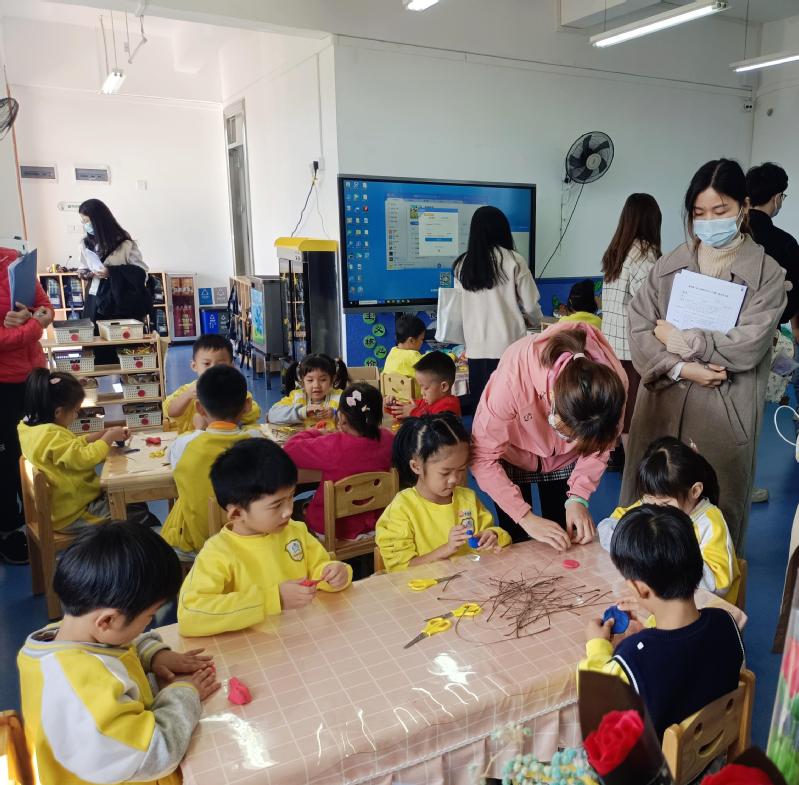 此外,本次实训实践围绕“幼儿园教育活动设计与实施”观摩主题进行。各个学生小组在与园内相对应的班级老师对接后,进入到不同的班级进行幼儿园中课堂的观察与记录,包括班级中老师的上课形式、孩子们上课过程中表现出来的行为以及老师与孩子们上课的沟通方式。同学们纷纷表示,与孩子们近距离的接触与交流,更能让他们够感受到孩子们自主探索的能力、思维的创意性以及强大的动手能力。同时,也能让同学们结合所学理论知识,对不同年龄阶段孩童的表现及特征进行分析比较。