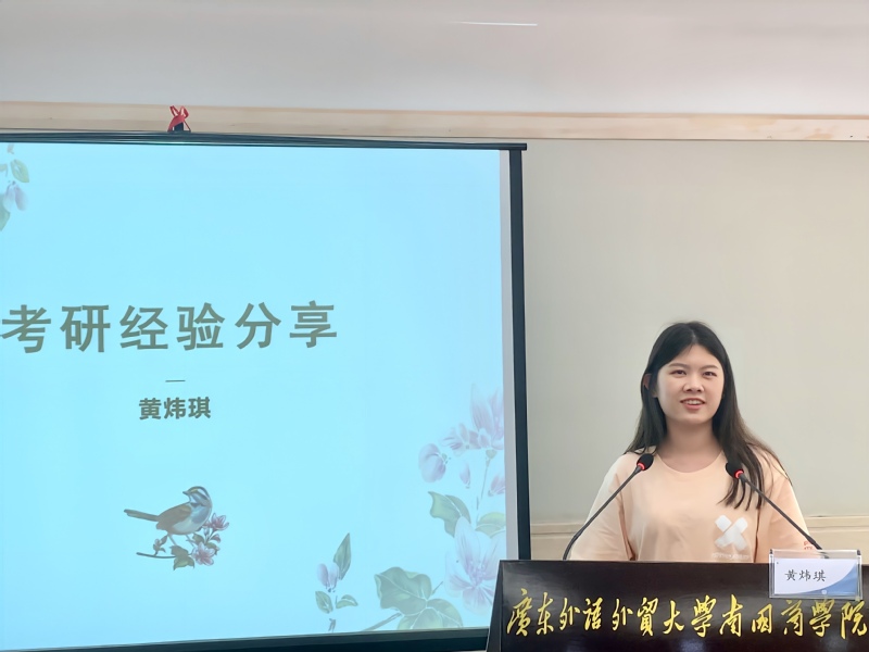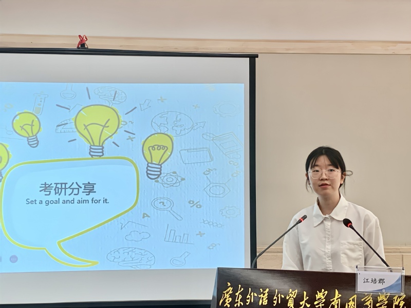 黄炜琪同学表示,考研是漫长而又枯燥的,同学们需要坚定自我、夯实基础、稳扎稳打。江培郡同学表示,做好规划和寻找适合的方法在考研的过程中十分重要,可以从大到小,从粗到细进行时间安排。同时她还分享了一些关于考研的书籍与软件,为在场的同学提供了参考依据。