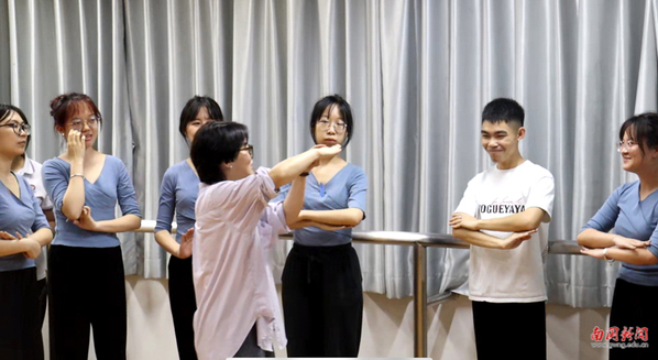 本网讯 广外南国商学院的舞蹈室中,总有几个特别的男孩的身影——一个班级40多人中,仅有4个男生,他们跟着女同学练着同样的压腿、压肩、踢腿等基本功;编舞课上,他们跟女同学一样穿着舞蹈鞋,学跳健身操、跳萌萌的手势舞……他们就是我校学前教育专业中男学生们,他们未来也可能成为幼教界的宝藏男孩——男幼师。