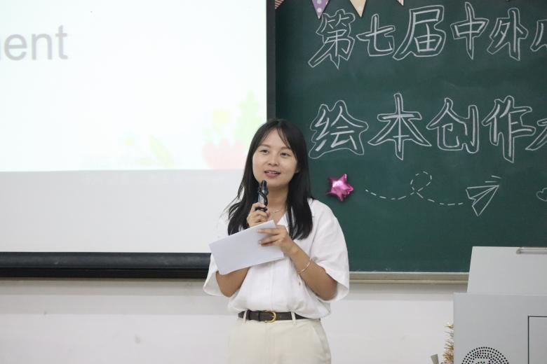 比赛伊始,翁琳老师对本次比赛致辞。翁琳老师表示,这项大赛立足于小学教育和学前教育领域的专业支撑之上,已展现出强大的延展性,为广大师生提供了一个展示才华、交流思想的平台。借此平台,目前有五本学生原创绘本作品已和香港大学的朱启华教授团队合作出版。随后,翁琳老师鼓励学生们创作出更多具有中国特色的优质绘本,为中国绘本事业的发展添砖加瓦。同时翁琳老师强调,本次大赛中的优质原创绘本将作为教材资源,在学校即将开办的幼儿园中投入使用,推动幼儿教育的发展。最后,翁琳老师向辛勤付出的老师们表示感谢,同时也为选手们对本次大赛的努力付出感到自豪和骄傲。