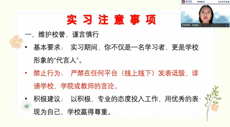 许冰洁老师就实习具体安排进行详细讲解
