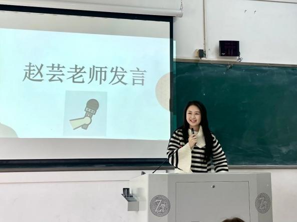 随后,赵芸老师在讲话中对全体同学上学期的付出与成果表示肯定与感谢。她指出,同学们即将步入大四、正值切换到职业岗位的关键阶段,希望大家珍惜此次机会,将更多精力投入教学实践,大胆尝试各类教学方法与活动形式,依托集体备课的团队协作与指导老师的专业把关,打磨出优质精品课程,为教师资格证备考、教师招聘面试及未来职业发展积累扎实的实践经验;同时祝愿同学们能在本次实践中收获成长、锤炼本领,在教育实践的道路上稳步前行,为未来的职业发展筑牢根基。