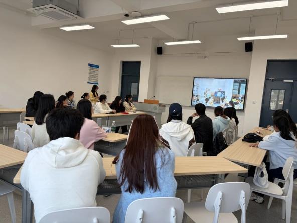 会议伊始,教育学院副院长翁琳老师在致辞中,首先对我院与白云区图书馆双方合作开展的“多彩民族非遗传承”与“儿童游戏化信息素养”两大项目板块进行了详细的讲解,其不仅是馆校协同育人的生动范例,更是在真实社会场景中践行师范生培养目标的重要探索。翁院长对项目迄今取得的成果给予充分肯定,并对同学们的深度参与和辛勤付出表示赞许。她寄语全体同学,希望大家能格外珍惜这一弥足珍贵的实践机遇,将课堂所学理论真正转化为解决实际教学问题的能力,在活动中锤炼教学设计、课堂管理与跨文化沟通的综合素养。她鼓励大家不仅要“做好”,更要“说好”和“写好”,积极参与到后续课程文本梳理与可视化录制工作中,将生动的实践过程转化为可留存、可传播、可复用的理论成果与教学资源,让宝贵的经验惠及更多人。最后,翁琳副院长表达了对未来的美好期许。她祝福所有参与者在项目中收获成长与启迪,并期待在不久的将来,看到同学们呈现出的精彩作品与扎实的成长印记。