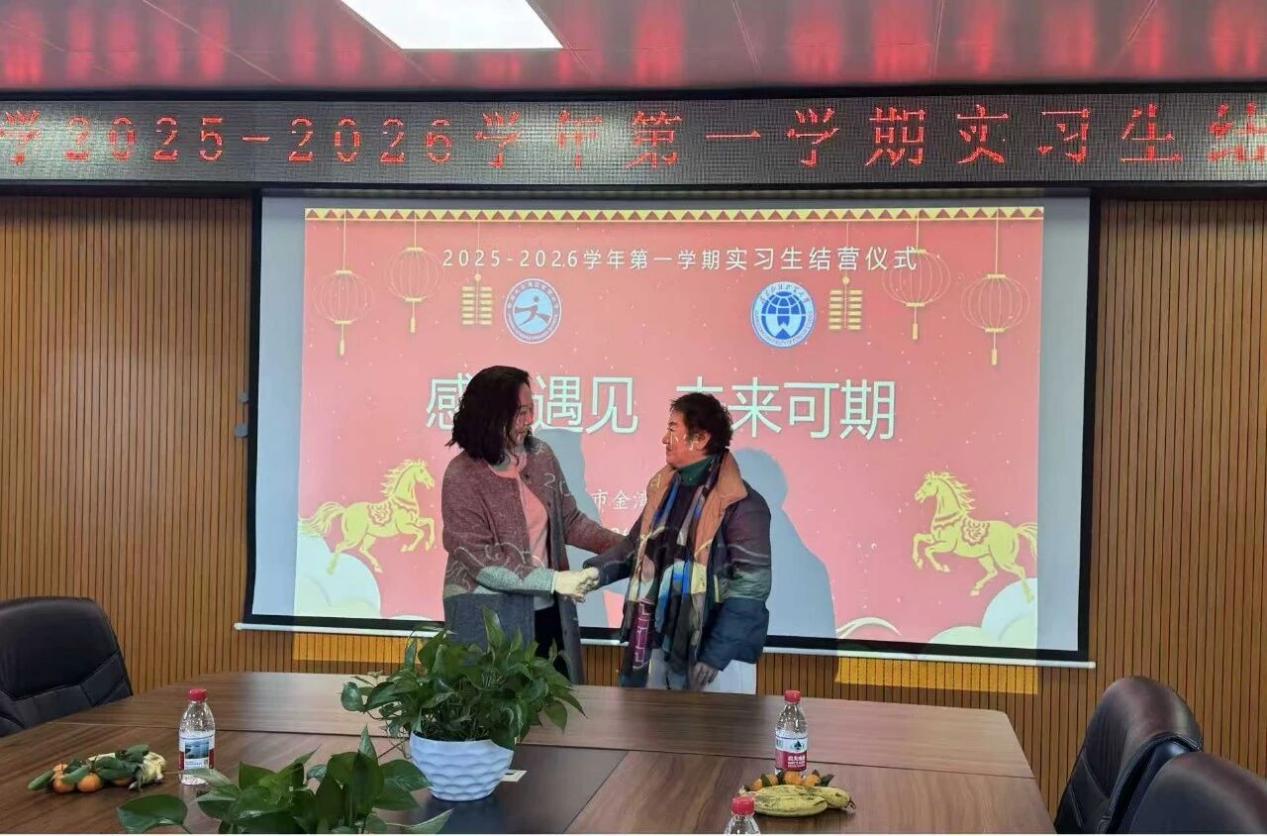 董主任细数了实习生们在实习期间的点滴付出:课堂上生动有趣的讲解、办公室里虚心求教的模样,都深深印刻在师生的脑海里。她表示,实习生们不仅为学校注入了新鲜的血液,更用蓬勃的朝气和积极的态度感染着身边的每一个人。董主任叮嘱实习生们,要常怀感恩之心,铭记师长的教诲与同伴的帮助;要保持进取之志,在未来的工作岗位上不断探索、勇于创新。她期待同学们带着在学校收获的成长与力量,书写更精彩的人生篇章。