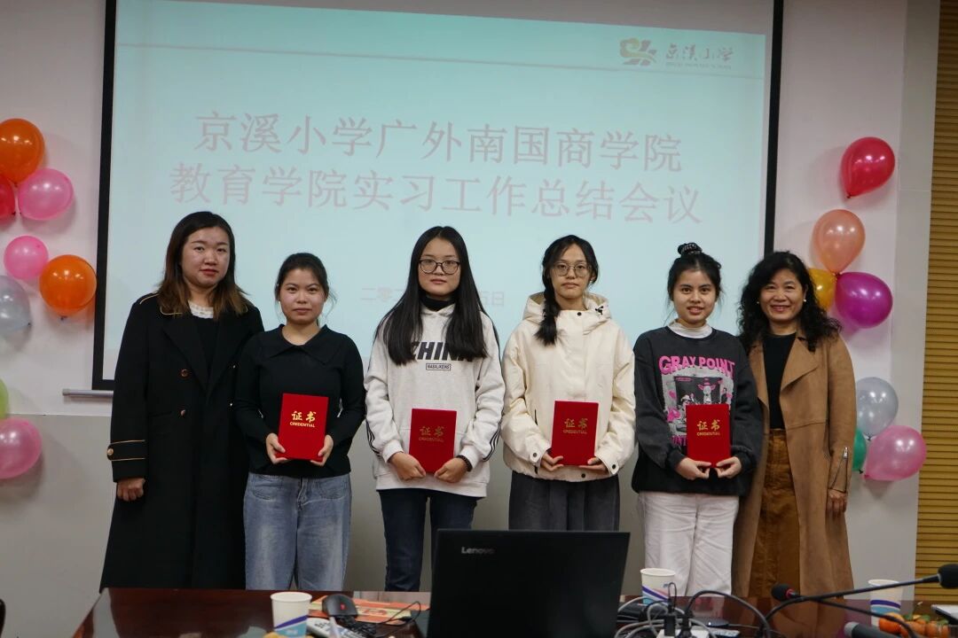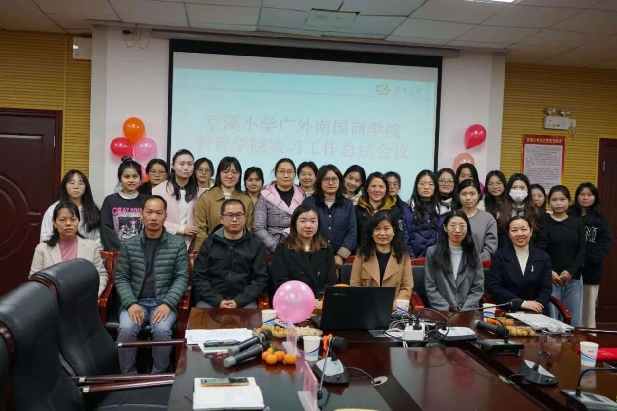 至此,京溪小学—广外南国商学院教育学院实习工作总结会议在温馨而庄重的氛围中圆满落下帷幕。本次会议不仅系统回顾了实习生们三个月来的点滴成长与丰硕收获,更生动诠释了“实践育人”的深刻内涵,彰显了两校协同育人的责任与温度。京溪小学以深厚的教育情怀与专业的教学支持,为实习生们搭建了从理论走向实践的坚实桥梁,助力他们在教育生涯的起点上扎根沉淀、蓄力启航。