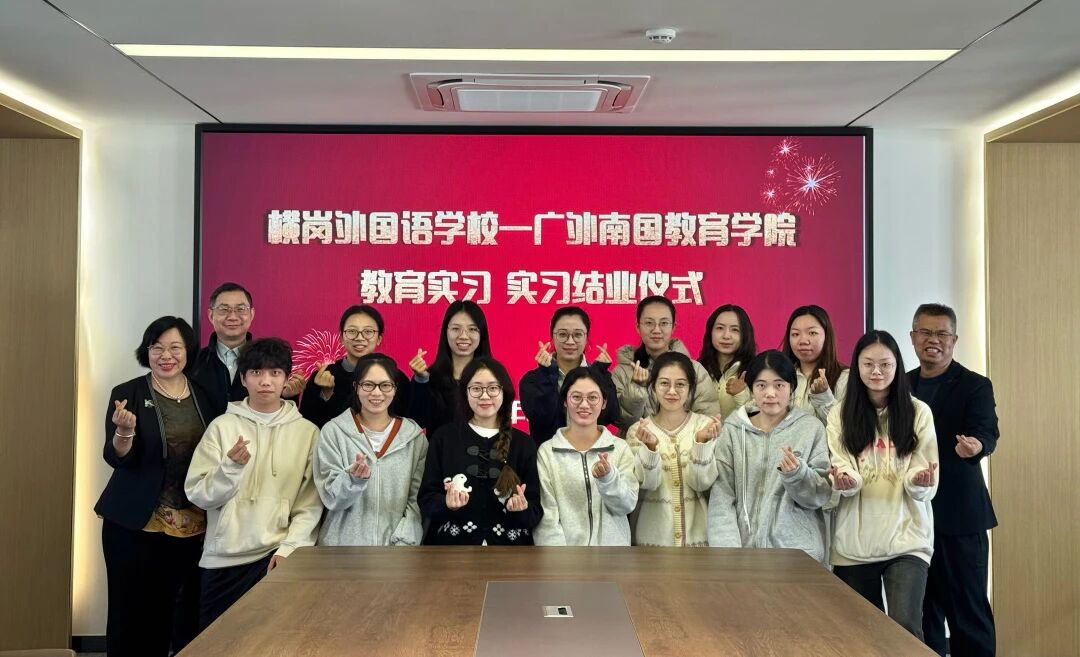 2026年1月5日下午15:00,广外南国教育学院实习生结业仪式在深圳市龙岗区横岗外国语学校会议室隆重举行。横岗外国语学校校长梁道安、特级教师梁添明、广外南国教育学院副院长肖建芳教授、学校全体指导教师及教育学院7名实习生齐聚一堂,共同见证这段实习征程的圆满收官。
