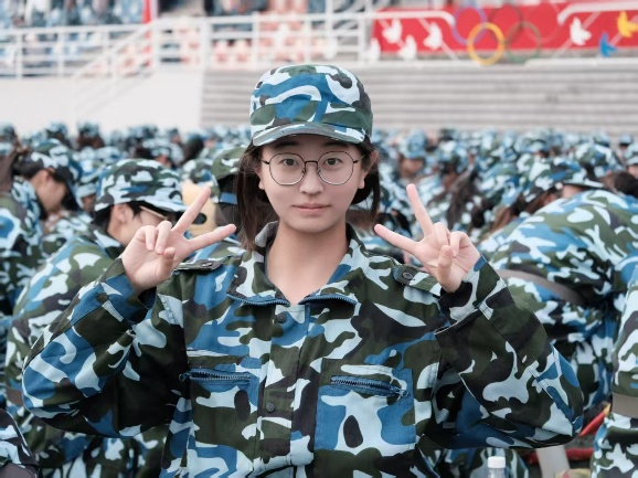 她站在整齐的方阵中,身着迷彩,英姿飒爽。作为旗语的一员,她深知自己所在的并非普通的队列,而是一个需要460多名同学共同完成的表演集体。