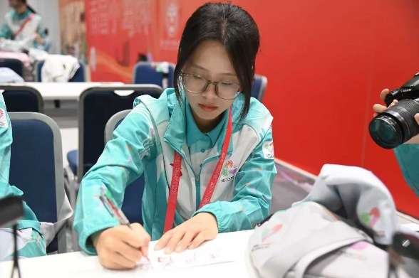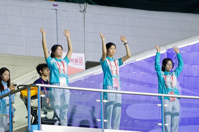 本次志愿服务中,对她来说最具挑战的是对场馆各区域分布的精准掌握——这不仅是工作要求,更是对观众负责的底线。为了能第一时间响应需求,她利用培训间隙和赛前时间,反复在广州体育馆内实地走访,确保无论观众问起哪个地点,都能准确指引。
