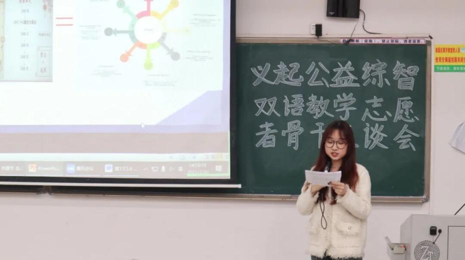 为了弘扬志愿服务精神,进一步提升志愿者们的教育教学综合能力,尤其是专业实践能力,让学生对未来努力的方向有一个明确的认知,并找到适合自己服务社会的方式,教育学院于3月30日在G101召开义起公益综智双语教学志愿者骨干座谈会。出席本次会议的有教育学院肖建芳副院长、曾娇副教授、黄国君副教授、翁无双老师、陈奕珺老师、许冰洁老师、张月琦老师、林蓓老师以及参与该项公益教学的志愿者骨干们。