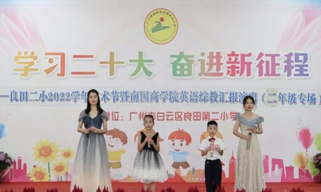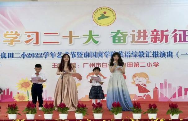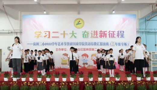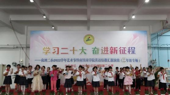 火红五月,阳光明媚。5月26日,2023年教育学院“星火”综智双语义教汇报演出在良田第二小学顺利举行!本次汇演由教育学院“星火”综智双语义教活动的小老师们及良田第二小学一二年级的全体学生共同完成,出席本次汇演的嘉宾有广东外语外贸大学南国商学院教育学院副院长肖建芳教授、黄国君副教授、教育学院直属党支部梁立为书记、良田第二小学曾祥广校长、曾仲成副校长以及一二年级各班家长们。
