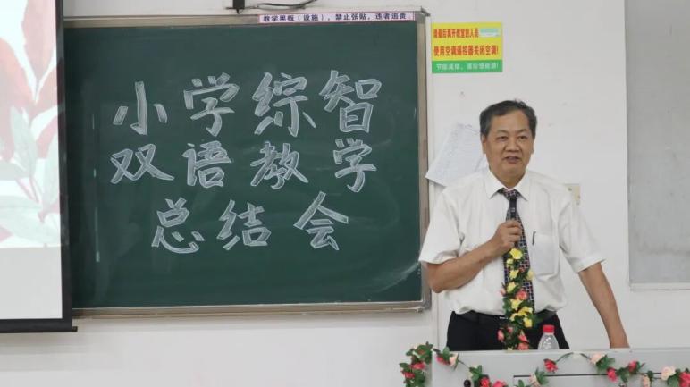 会议伊始,由冯增俊教授作开场致辞。首先,他表示很高兴能够参与本次小学综智双语教学总结会。随后,他指出语言课程的设计对于儿童的发展具有关键性作用,并以类人猿和狼孩的例子佐证了该观点。接着,他指出小老师们已经养成了游戏化教学的好习惯,这种习惯的保持将有利于帮助儿童形成良好的语言学习效果。最后,冯增俊教授希望综智双语教学模式能够越办越好,也期待每位同学都能以教育报国的方式进入到民族振兴的洪流之中,用不懈的努力编写南国发展新篇章。