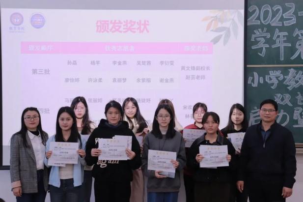 为传播综智双语教学理念,总结义教教学经验,以更好面貌提升综智双语教育力,教育学院于3月7日下午在C302召开教育学院小学教育系综智双语义教新学期启动暨阶段总结表彰会。良田二小曾祥广校长、黄文锋副校长、江绮文主任,蟠龙小学曾德亮副校长、宋欢副主任;教育学院院长、综智双语教学项目总设计师冯增俊教授、教育学院副院长肖建芳教授、小学教育系主任曾娇副教授、副系主任赵芸老师、小学综智双语义教活动全体指导老师及志愿者们共同出席本次活动。