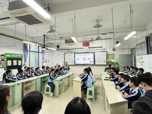 活动伊始,专家团队在陈岚校长的带领下,分别观摩了二年级任子义老师和五年级黄焕珍老师的英语课堂。任子义老师的课堂上,教师通过设计听、说、小组合作等活动,锻炼学生整句输出的语言学习能力,培养学生的预测与推断思维。并通过实物演示,让学生直观感受sink和float词语的含义,为学生下一节课内容做铺垫。学生在课堂上积极踊跃,跟着教师的课堂设计,逐渐进行新知识和新技能的学习和掌握,师生都沉浸在英语学习的快乐中,充分体现了综智英语的学科融合理念。