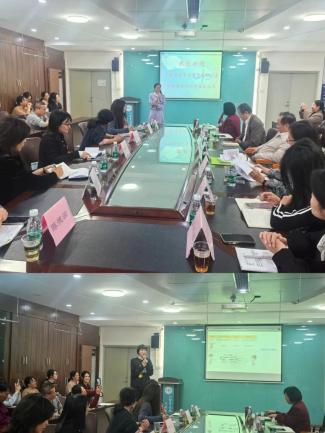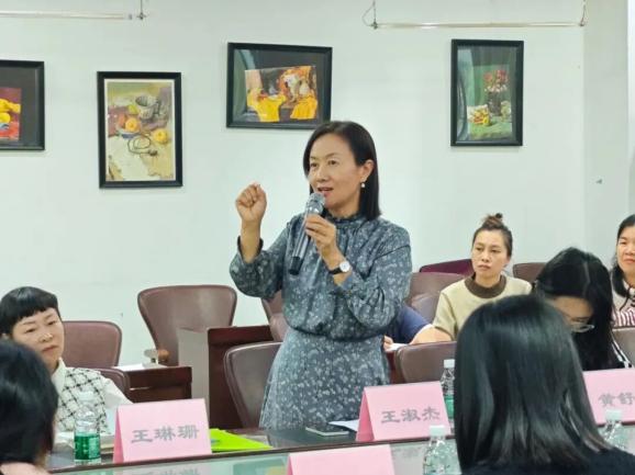 课堂教学观摩环节结束后,大家共聚会议室进行研讨。首先,两位授课教师分享了课程设计亮点和教学反思。接着,陈岚校长简明扼要地介绍了海北小学综智英语教育实验的成果。“这是中国最震撼的英语课堂!”陈校长分享了中国教育报记者对综智英语课堂的肯定,接着展示了海北小学从建校开始,综智英语教育实验创新引领智能时代外语教学的新模式,强调了在儿童智能开发的最佳时期,采用最佳教学方法为智能时代培养高智能人才的重要性。