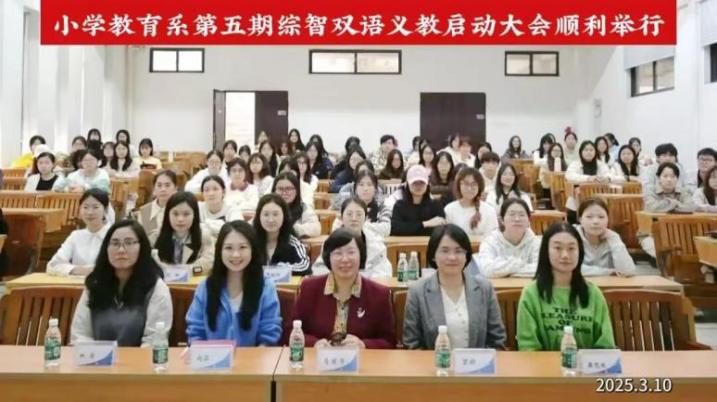 以教育之名,赴青春之约!2025年3月10日下午,教育学院小学教育系第五期综智双语义教启动大会于G101室举行,旨在让综智双语义教志愿者在实践中锤炼,探索既能贡献社会又能契合个人发展的专业成长路径。本次大会由邓思倩同学主持,出席本次大会的有教育学院院长冯增俊教授、副院长肖建芳教授、小学教育系主任曾娇副教授、小学教育系副主任赵芸老师,以及本期综智双语义教项目指导老师和全体22级小学教育专业学生。
