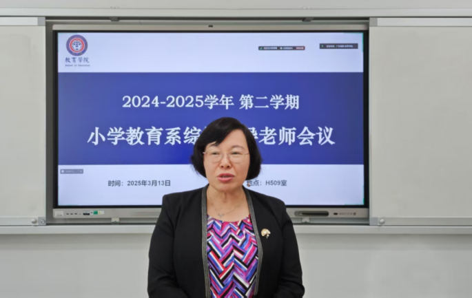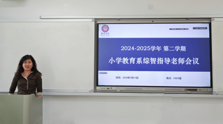 为顺利开展教育学院小学教育系第五期综智双语义教活动,小学教育系综智指导老师会议在H509室顺利召开。会议由小学教育系副主任赵芸老师主持,教育学院副院长肖建芳教授、小学教育系主任曾娇副教授以及小学教育系全体综智指导老师参会。