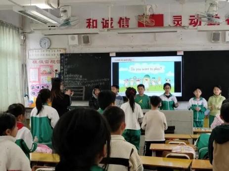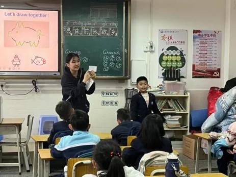 在课堂上,志愿者们匠心独运,巧妙融合丰富多样的图片、实物展示以及趣味无穷的游戏,同时灵活运用角色扮演、TPR(全身反应)等教学方法,并精心结合积分奖励制度,成功地点燃了孩子们的学习热情,使课堂洋溢着活力与欢乐。