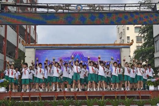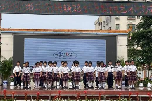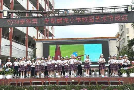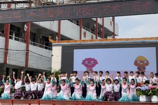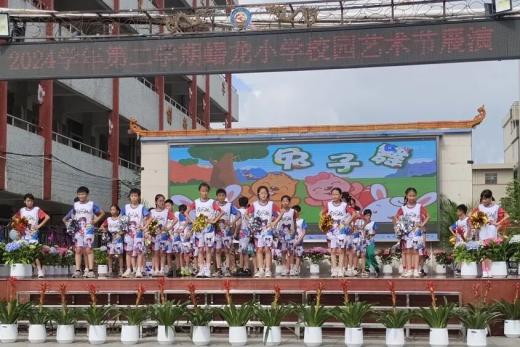 缤纷夏日,童心飞扬。在第七十五个国际儿童节来临之际,教育学院于蟠龙小学圆满举办第五期综智双语课程汇报演出。本次汇演由教育学院综智双语义教活动的志愿者们与蟠龙小学一至四年级的学生联袂呈现。蟠龙小学校长萧国标,副校长萧惠清、曾德亮、龙志健,教育学院副院长肖建芳、小学教育系主任曾娇及指导教师代表们,以及蟠龙小学一、二、三、四年级各班学生家长们等嘉宾莅临现场,共同见证这场充满童趣与温情的教育实践成果展示。