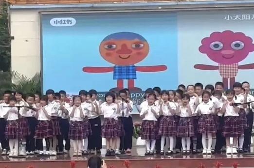 三、四年级孩子们的表演则彰显成长的力量感:活力四射的Run for Fun和We Will Rock You点燃全场,跳跃、转圈、呼喊“Fun! Fun!”,拍膝盖、跺脚板、高举手臂“Rock You!”,简单有力的动作爆发出欢乐能量,童真与摇滚精神交融;创意十足的Penguin's Games,孩子们化身憨态可掬的小企鹅,跌撞前行、“啾啾”欢叫,萌趣表演引发阵阵掌声;Happy Birthday系列歌曲则将温馨推向高潮,挥舞的气球与奶声拖长的祝福,交织成甜蜜梦幻的生日派对,温暖流淌。
