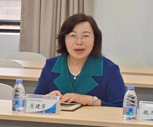 肖建芳副院长首先致辞,欢迎蟠龙小学代表一行,并简要介绍会议安排。她指出,两校综智双语合作已稳步推进至第六期,自2023年以来,通过双方教学团队的共同努力,学生英语能力与综合素养显著提升。她感谢所有参与者的付出,并期待未来合作迈向更深层次、更高质量。