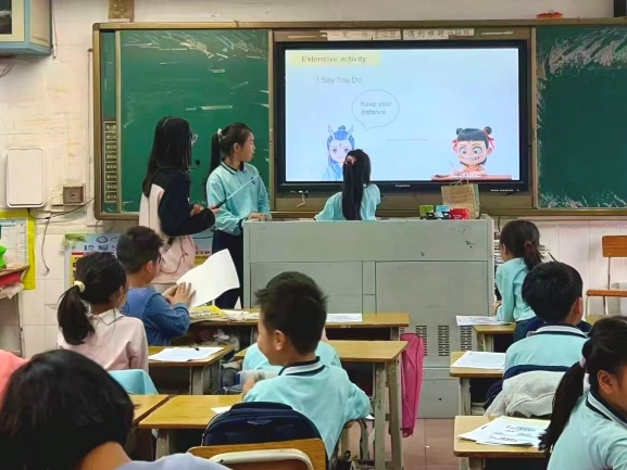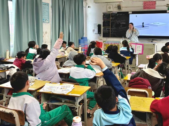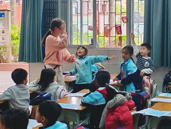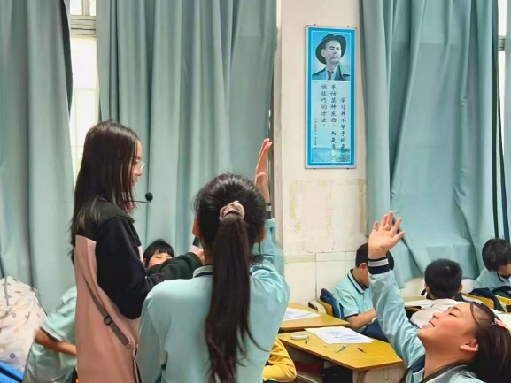 同时,志愿者们与孩子们共同打造了一系列富有创意的课堂活动:开展小组合作探究游戏、进行情景对话表演、快问快答小游戏等。这些丰富多彩的互动不仅让孩子们在轻松的氛围中提升了语言运用能力,也培养了他们的团队意识和表达自信。通过正向激励与情感陪伴,志愿者们用心浇灌着孩子们对英语学习的热爱。在此过程中,志愿者们充分发挥专业特长与创新精神,主教助教小老师彼此之间密切配合、互相支持,展现出强大的团队凝聚力,大家齐心协力为孩子们营造了一个温暖、包容、充满成就感的学习天地。