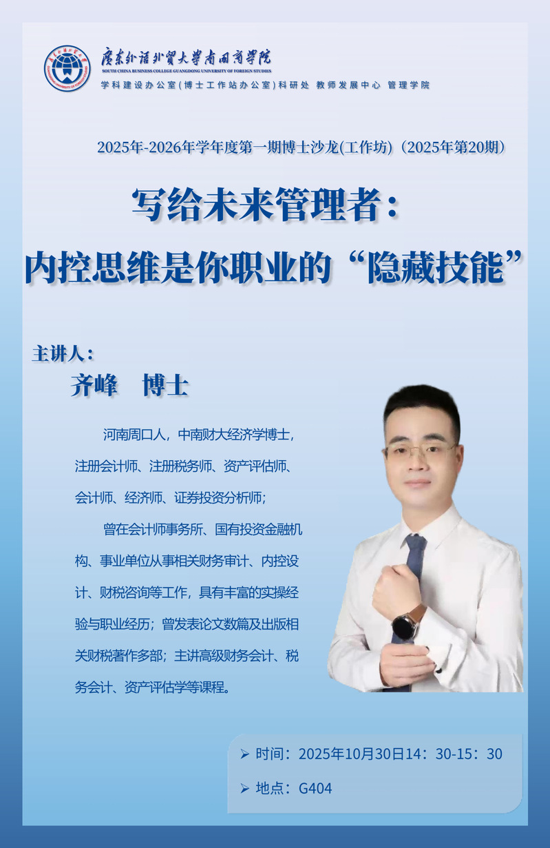 讲座主题:写给未来管理者:内控思维是你职业的“隐藏技能”