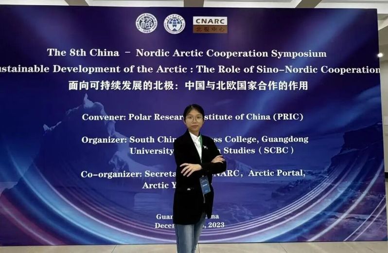 她曾多次参与过学校承办的一些学术会议,包括中美北极论坛、中国北欧北极合作研讨会。在此期间,从最开始的旁听,再到端茶,到后面,还尝试去机场接机。这些经历对本科阶段的学生来说是非常珍贵的。