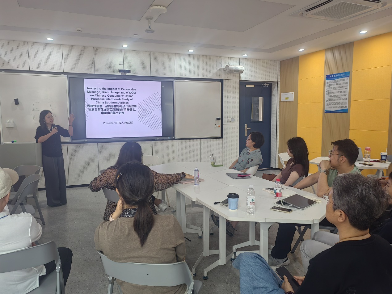 4月9日,由科研处、教师发展中心与空港品牌与数字化营销创新研究团队联合主办的2026年第3期南国“争鸣”系列学术沙龙在H403顺利举行。本次沙龙以“广东非遗品牌数字化营销创新研究”为主题,由杨晓燕教授担任主持人,翁丽丽、金丽丽、杨媛媛、陈迪四位老师带来精彩分享,吸引了众多师生参与交流。