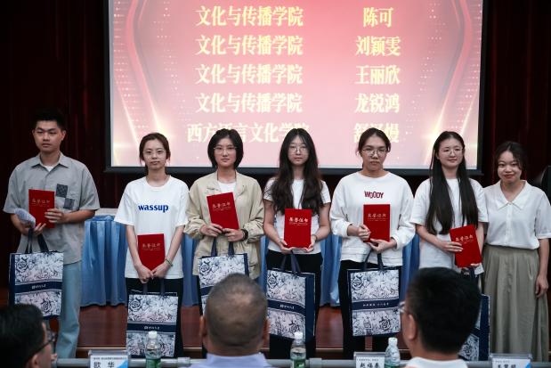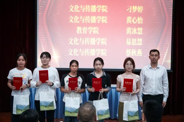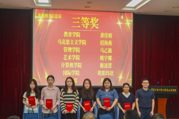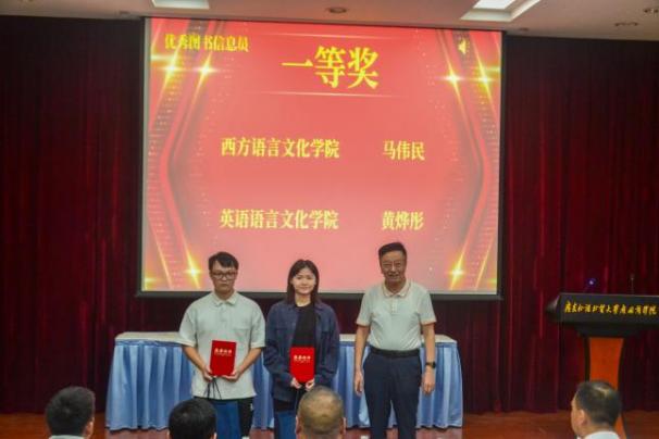 10月30日下午,图书馆2024-2025学年年度表彰大会在学术报告厅F101隆重举行。共13位优秀图书信息员、15位优秀勤工与十佳志愿者、6位风衍悦读社优秀社员获表彰。赵福春副校长参加会议,并为荣获一等奖的信息员马伟民(西语学院)、黄烨彤(英文学院)颁奖。图书馆副馆长于凝雨主持,馆长孔晓明、学生处副处长王黎明、全体信息员、获奖学生及图书馆相关人员出席本次大会。
