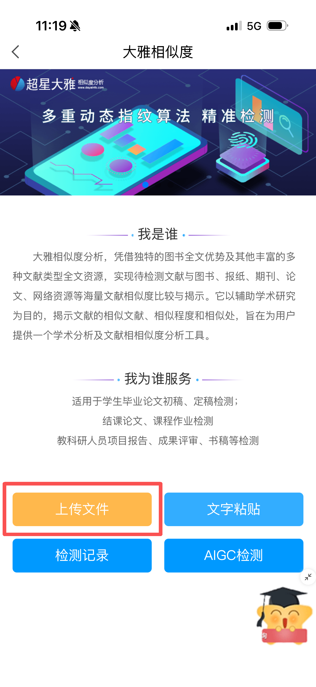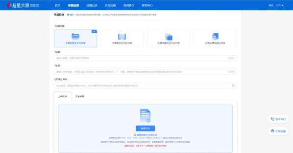 步骤二:在“大雅相似度”页面中上传所需检测的文件