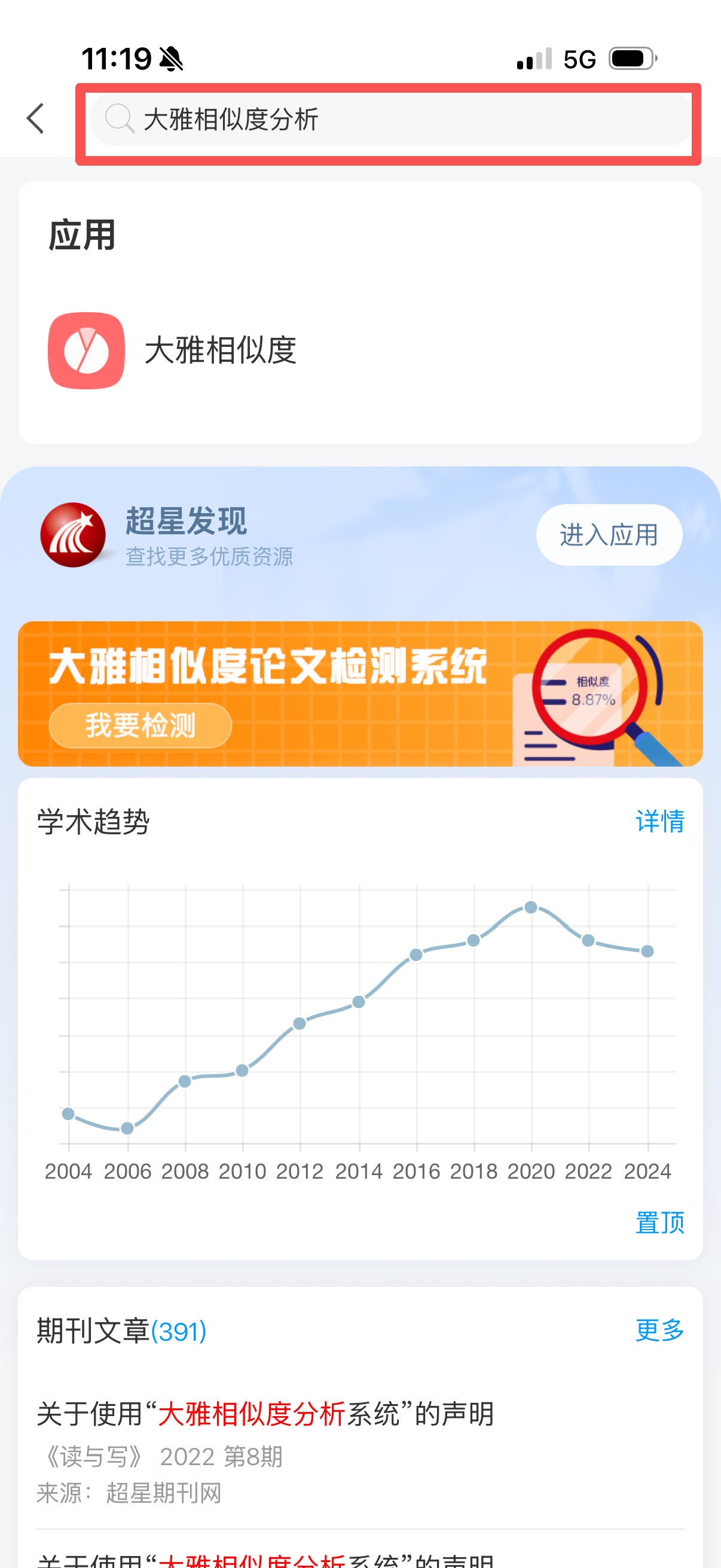 步骤一:学习通首页访问“搜索”,输入“大雅相似度”