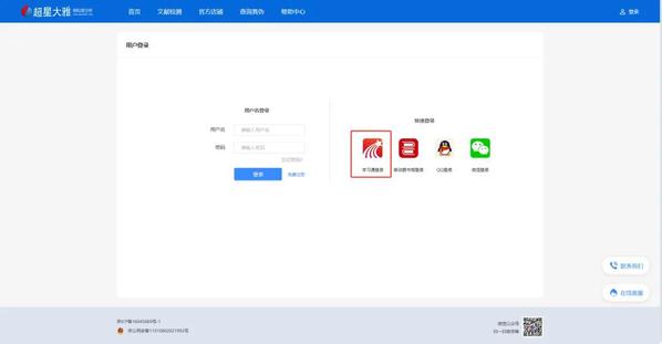 步骤一:进入用户登录页面,在快速登录方式中选择“学习通”登录。