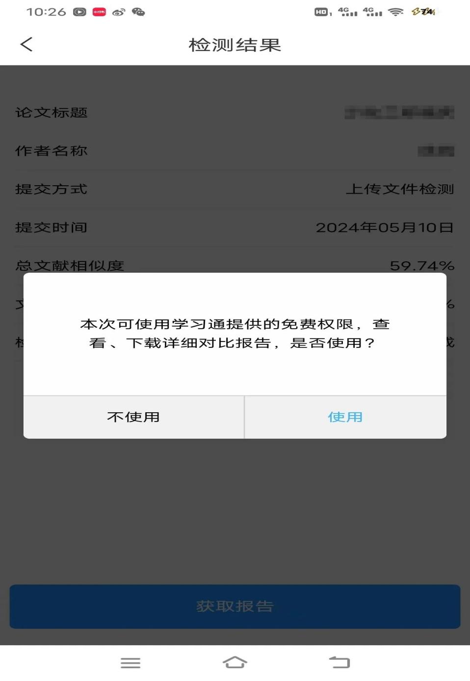 步骤三:获取报告后,点击通过“使用”免费权限的方式查看检测报告即可。