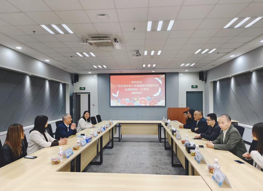 参观结束后,双方进行了座谈交流。座谈会上,贾晓斌系统介绍了广东东软学院及其图书馆的总体情况,并重点阐述了该馆在特色资源建设、服务理念等方面的举措。随后,双方就馆舍功能布局、文献资源建设、阅读推广与勤工管理等主题展开了深入探讨。