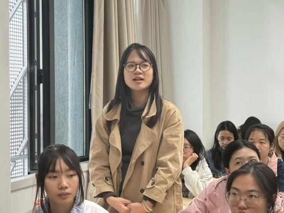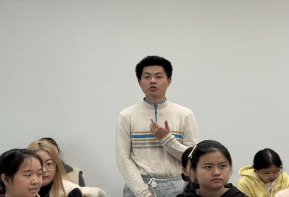 在互动环节中,郑梦娴围绕书中人物性格、情节发展以及语言风格等方面提出四个问题,引发同学们的热烈讨论。现场气氛活跃,同学们踊跃分享见解,结合自身生活经验,寻找与书中情节的共鸣,交流阅读体会和思考。