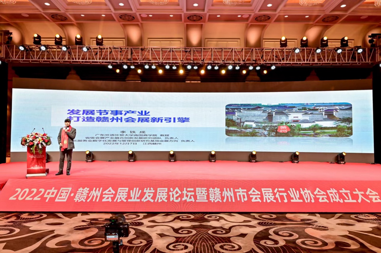 127日,2022中国·赣州会展业发展论坛在赣州锦江国际酒店举办。我校省级会展产业融合创新研究团队负责人、广东服务业数字化发展与管理创新研究基地会展方向负责人、会展经济与管理专业负责人李铁成教授受邀参会并发表主题演讲。