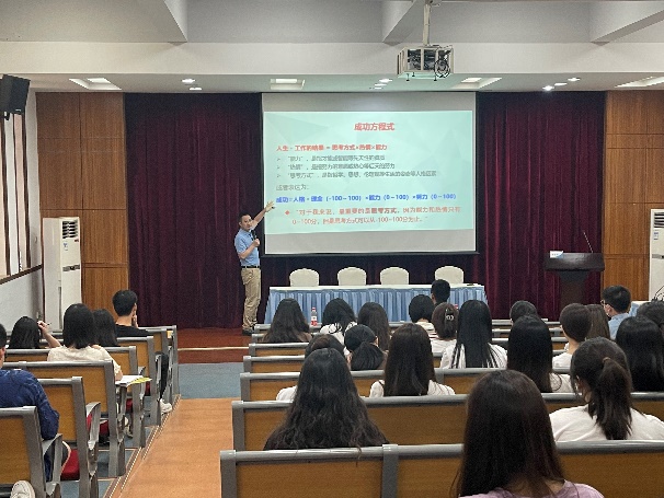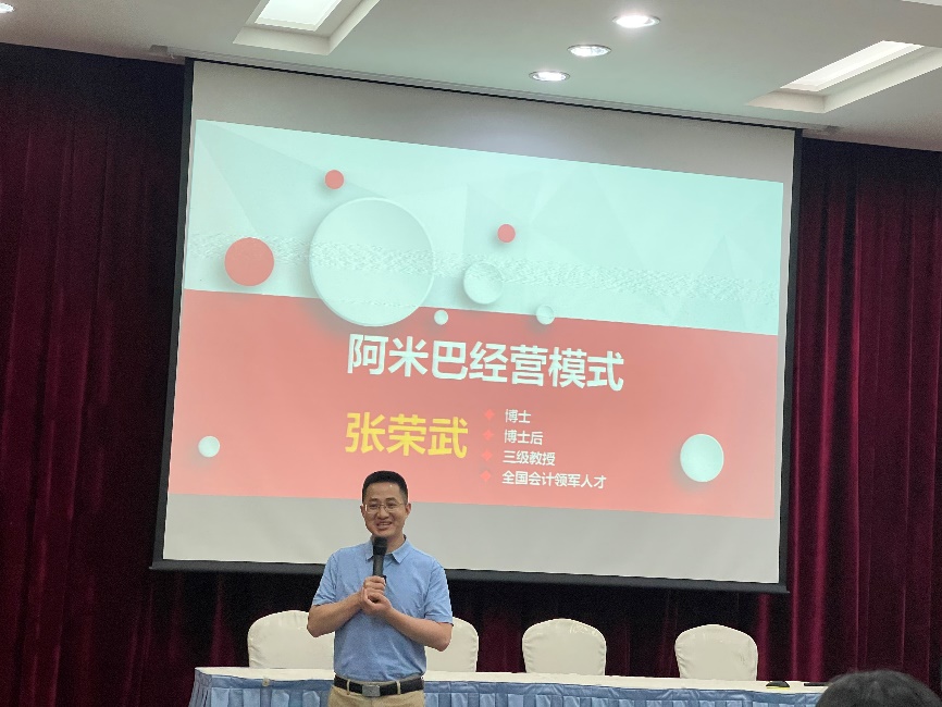 张荣武教授首先以自身独立董事的经历提出会计类学生不能只学习书本上的内容,应该更深层次了解专业前沿及外延相关领域的知识,拓宽自己的职业领域和发展前景,要推动自己成为高级会计人才。接着,张荣武教以日本“经营之圣”稻盛和夫领导日航重生的经典案例阐述了阿米巴哲学,他指出阿米巴哲学是由成功方程式、六项精进、经营12条、经营之道等核心内容组成。而成功议程式即人生·工作的结果=思考方式×热情×能力,其中思考方式是指哲学、思想、伦理观等生活的态度等人格因素,是影响成功的重要因素,同时不能忽视热情与能力,热爱是点燃工作激情的火把,成功的人往往是那些沉醉于所做事情的人。随后,张荣武教授用通俗易懂地的语言向同学们系统地解读了什么是阿米巴?企业为什么采用阿米巴?怎样实现阿米巴经营等问题,引导同学们站在企业管理者的角度领悟战略思考、战略规划和战略经营。最后,张荣武教授用他国外求学的经历鼓励同学们要把握青春,在人生最好时期既要激情奋斗又要享受生活,让青春在激情奋斗中绽放最美的光芒。