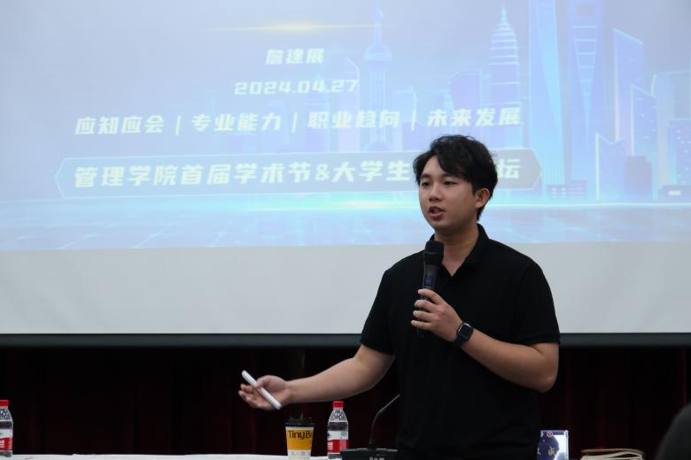 苏武俊教授在闭幕式发表了博识论坛总结讲话,他指出,在论坛期间,与会者深入学习了管理发展前沿科技,探讨了从互联网产品开发到数字经济高地的多元话题,同时交流了工作经验,分享了成功与失败的感悟。他强调,做好人生规划、学好专业知识、跟上时代发展步伐至关重要,特别是在数字经济与新质生产力崛起的背景下,提升个人核心竞争力尤为重要。最后,苏教授感谢各位的参与,期待大家将所学应用于实践,共创美好未来。