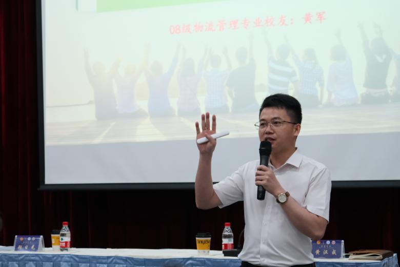 目前任教于广东白云学院的物流管理专业校友黄军博士,以“寻找自己的方向”为主题,为师弟师妹们分享了自己的成长历程和学术之路。他深情回顾了自己的个人履历、学习心得,为大家提供了宝贵的经验和建议。黄博士的分享不仅激励了大家勇敢追求梦想,更引导大家明确自己的方向,不断前行。